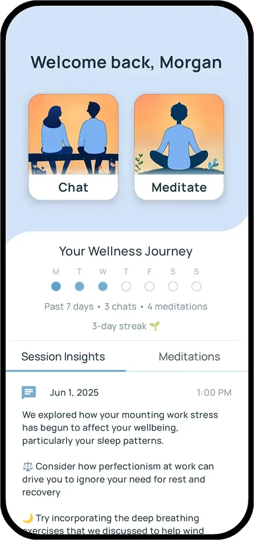 That's precisely what we've focused on with Wellness AI. By combining AI counseling with custom AI meditations, we've created an experience that isn't just imitating what human therapists do – it's creating something new that offers unique benefits to users that could not be replicated in traditional mental health settings.